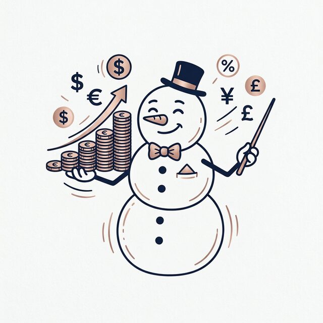 対して「複利」は、ついた利息をまた元本に組み入れて、その「利息がさらに利息を連れてくる」仕組みなんです。例えるなら「雪だるまを斜面の上から転がす」ようなもの!